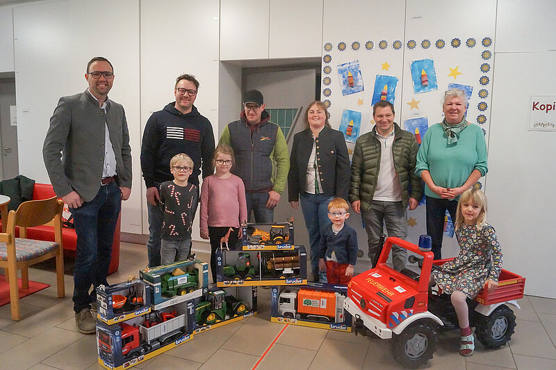 Der Bauerbund Bad Wimsbach-Neydharting überreichte den Kindergarten-Knirpsen tolle Spielsachen. In Abstimmung mit Kindergarten-Leiterin Sabine Jodl brachte die Bauernschaft die Fahrzeuge zeitgerecht vor Weihnachten vorbei; Leuchtende Kinder-Augen und große Freude bei den Pädagoginnen inklusive.