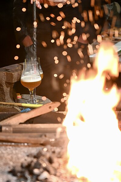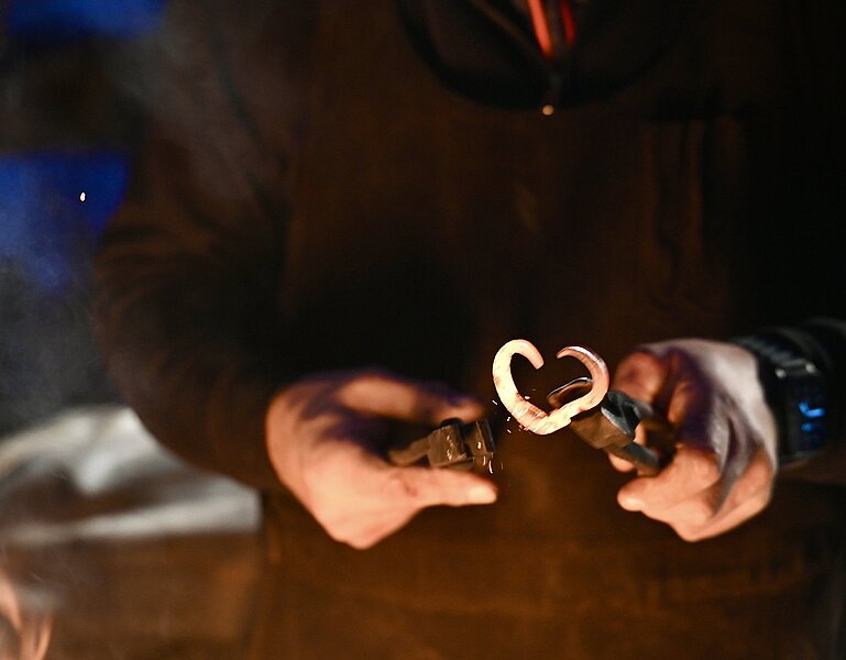 Bereits ab 16:00 Uhr kamen die Gäste in die den Kraftplatz am Wimsbach. Die winterliche Kälte tat der geselligen Atmosphäre keinen Abbruch. Das Schmiedeteam zeigte sein Können und ließ die Funken sprühen. Klein und Groß waren mit großer Begeisterung dabei. Sehr gerne konnten die Gäste auch selber bei den Glücksbringern Hand anlegen. So entstanden individuelle Schweinderl und schöne Hufeisen. Bei der “Prägestation” sorgte ein kraftvoller Schlag mit dem Hammer dafür, dass eine 2026er-Glücksmünze entstand. Auch die Kunst des Bierstachelns zeigte Kulturvereinsobmann Ing. Robert Spitaler.