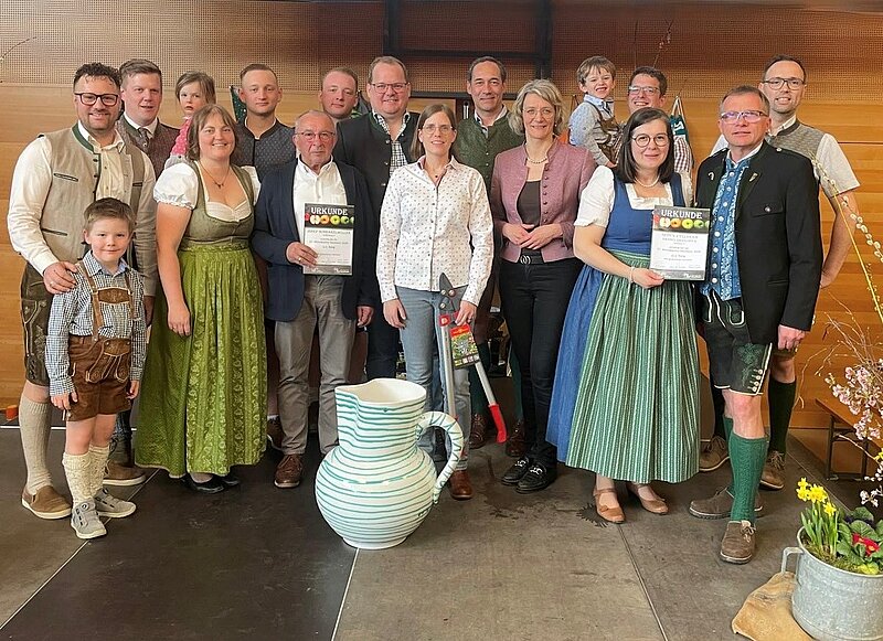 Am Sonntag holte die Bauernschaft die ausgezeichneten Most-Produzentinnen und -Produzenten auf die Bühne. Unterstützt von Bezirksbäuerin Margit Ziegelbäck und Bürgermeister Erwin Stürzlinger gratulierten sie zu den hervorragenden Mosten und dankten für die Bereitschaft, Proben einzureichen.