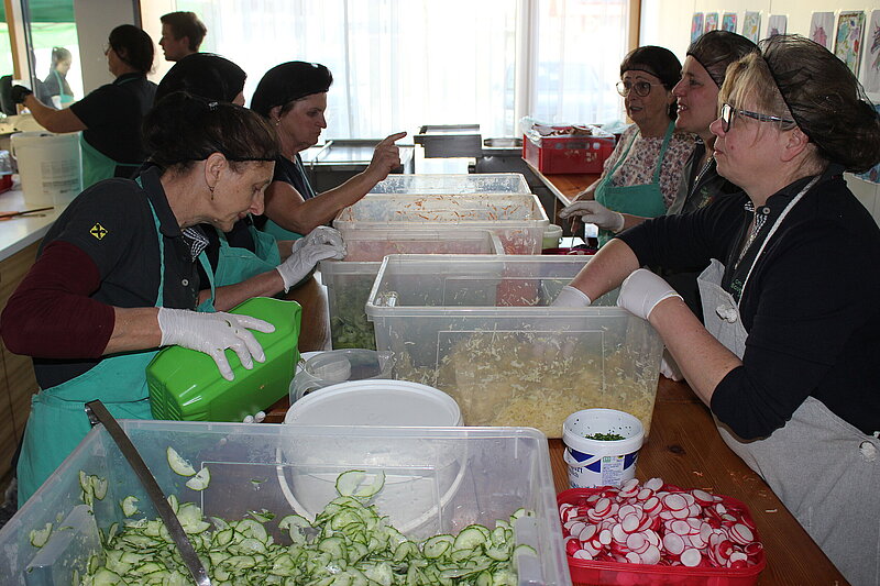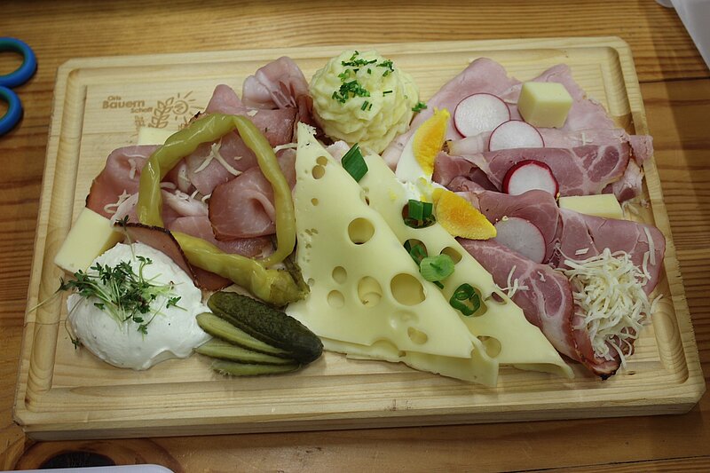 Dreier-Kas, herzhafte Schmankerl-Brote und Brettl-Jause waren die perfekte Begleitung zu den Einser und Zweier Mosten. Am Sonntag fiel die Auswahl nicht minder schwer. Es gab Bratl mit Kraut und Knödel, Putenstreifen oder gebackenen Camembert auf selbstgemachten Salaten mit köstlichen Dinkelweckerl - natürlich auch von Bäuerinnen-Hand gezaubert - und Pommes für die Kleinen.