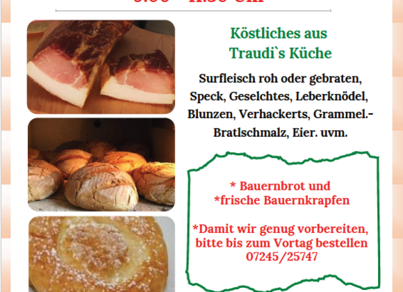 Die Köstlichkeiten aus Traudi's Küche sowie Most, Süßmost, Obstessig und Schnäpse können beim Ab-Hof-Verkauf in der Wimstraße 5 erstanden werden!